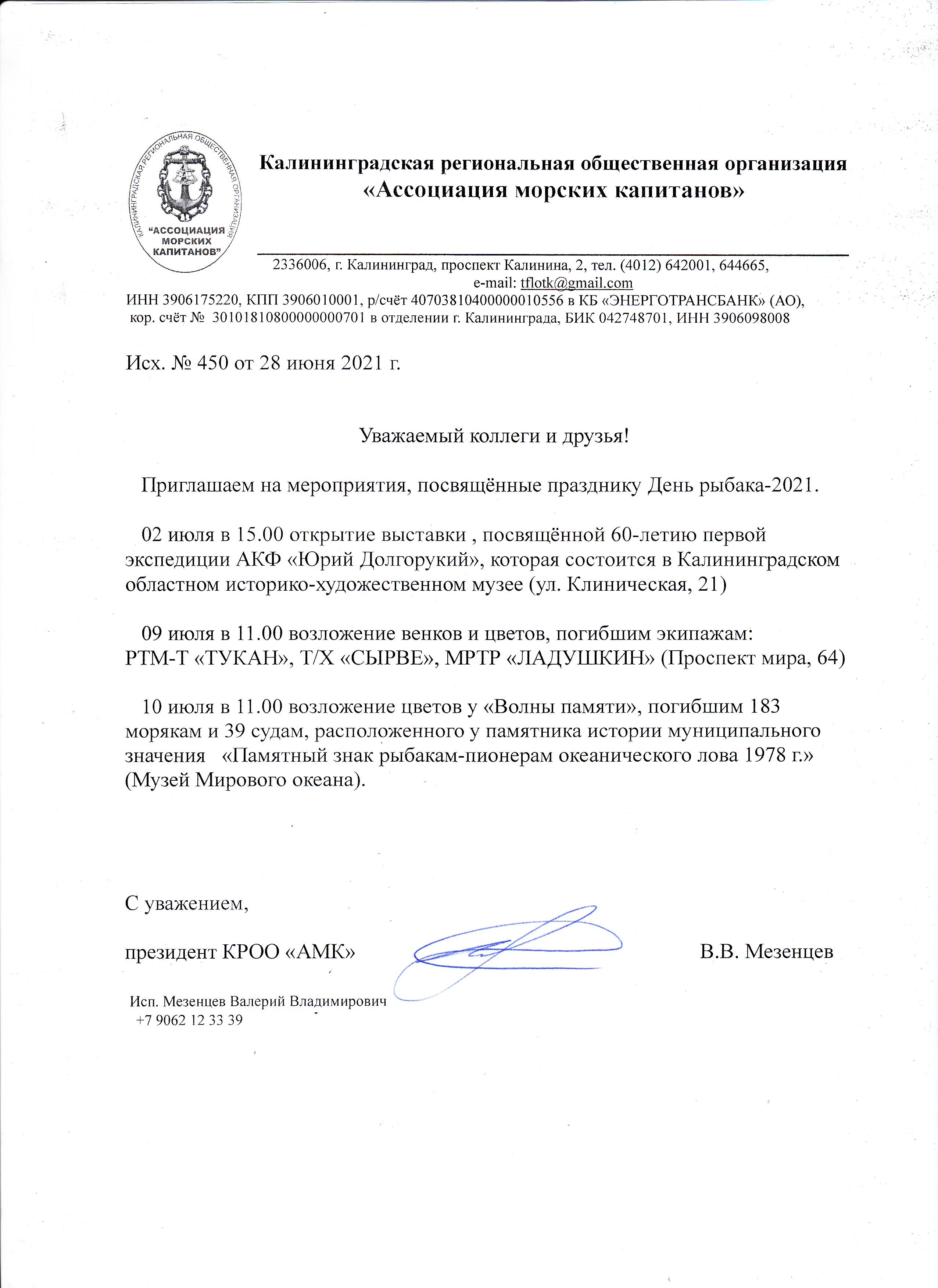 Тысячи наших выпускников, многие из которых сегодня уже считаются ветеранами отрасли, сделали Калининград рыбацким краем, создали рыбопромышленные предприятия и флот. Немало калининградцев и сегодня продолжают лучшие традиции и наших земляков, и всех рыбаков нашей страны. Их опыт, профессионализм являются залогом развития современных предприятий и обучения новых поколений калининградских рыбаков.